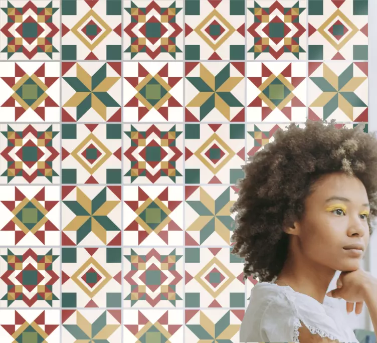 Transforme seu espaço com o adesivo azulejos com motivos geométricos, que traz um design vibrante e moderno! Com estrelas e formas geométricas, este adesivo é uma verdadeira obra de arte para suas paredes. As telhas de cimento ganharão vida com as cores intensas e a simetria encantadora, criando um ambiente único e cheio de personalidade!