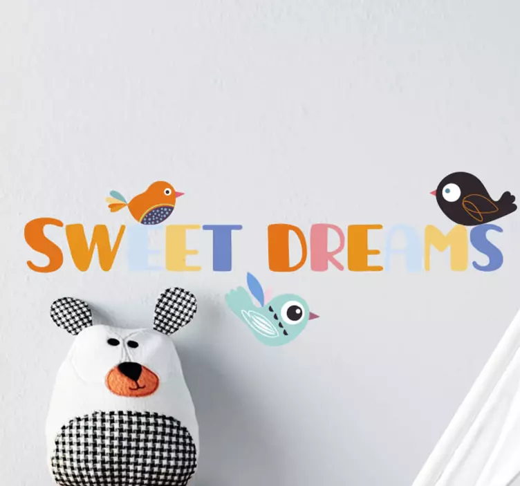 O adesivo cabeceira frase colorida noturna é uma verdadeira obra de arte gráfica que transforma qualquer espaço! Com a sua ilustração lúdica, este adesivo apresenta pássaros e um texto doce que evoca sonhos e diversão. As letras coloridas e o design multicolorido tornam-no ideal para ambientes infantis, trazendo alegria e criatividade para a decoração!