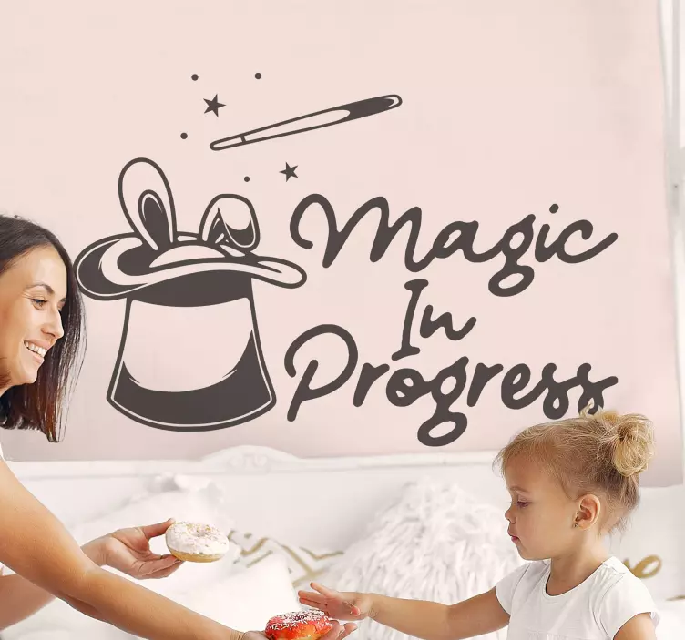 Referência: A46987Uma cena encantadora com um chapéu mágico adornado com elementos divertidos como estrelas e uma varinha mágica, ideal para inspirar criatividade. A frase 'Magic In Progress' adiciona um toque lúdico, capturando a alegria da imaginação infantil. Perfeito para um espaço alegre.