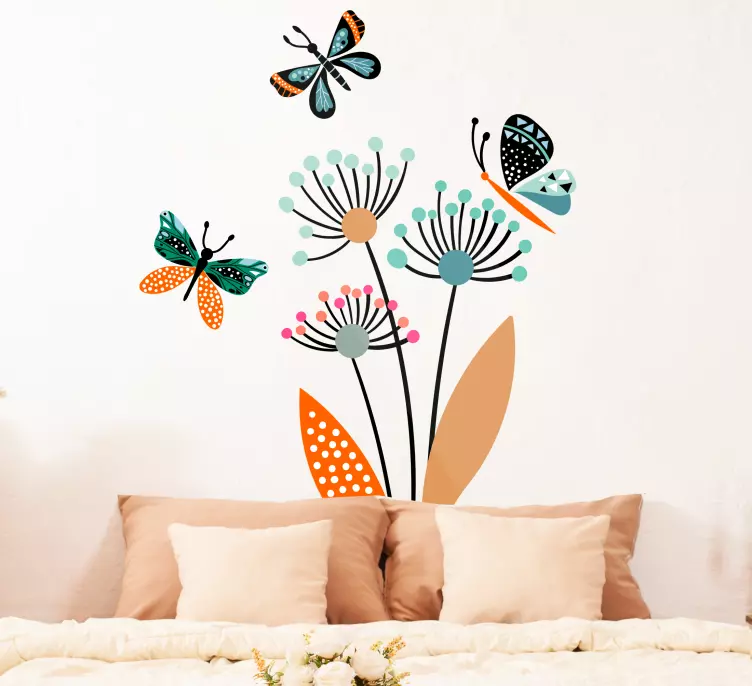 Adesivo natureza borboletas florais coloridas