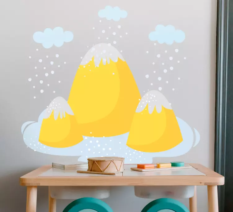 Descobre o adesivo natureza picos amarelos da montanha, uma verdadeira obra de arte gráfica que traz o esplendor da natureza para o teu espaço! Com um design caprichoso que combina amarelo, montanha, ilustração, nuvens, neve e uma essência vibrante, este adesivo é a escolha perfeita para quem ama a natureza e quer transformá-la em parte da sua decoração!