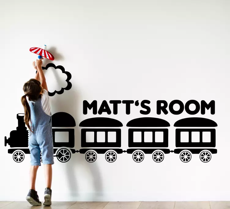 Transforme o ambiente do quarto do teu pequeno com o nosso adesivo para crianças com personalização de trem! O design gráfico é encantador, apresentando um comboio em silhueta, tornando-o customizável com o nome da criança. Este adesivo é perfeito para criar um espaço brincalhão e divertido, com um toque elegante em preto e branco, ideal para qualquer quarto de criança.