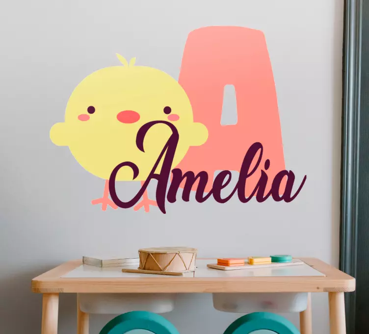 Referência: A48924Um encantador design de pintinho apresenta um amigável pintinho amarelo ao lado de uma inicial colorida e um nome personalizável. Este elemento lúdico é perfeito para criar uma atmosfera agradável no espaço de uma criança, adicionando calor e individualidade ao seu quarto.