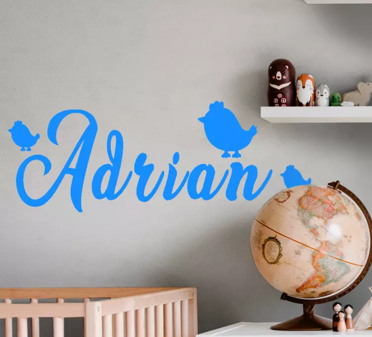 Transforma o espaço dos mais pequenos com o Adesivo para crianças nome personalizado com pássaros. Este design gráfico encantador traz uma silhueta de garotas rodeadas por pássaros, criando uma atmosfera brincalhona e personalizada. O nome personalizado torna este adesivo verdadeiramente único, permitindo que a criança se identifique com o seu espaço de forma divertida e criativa.