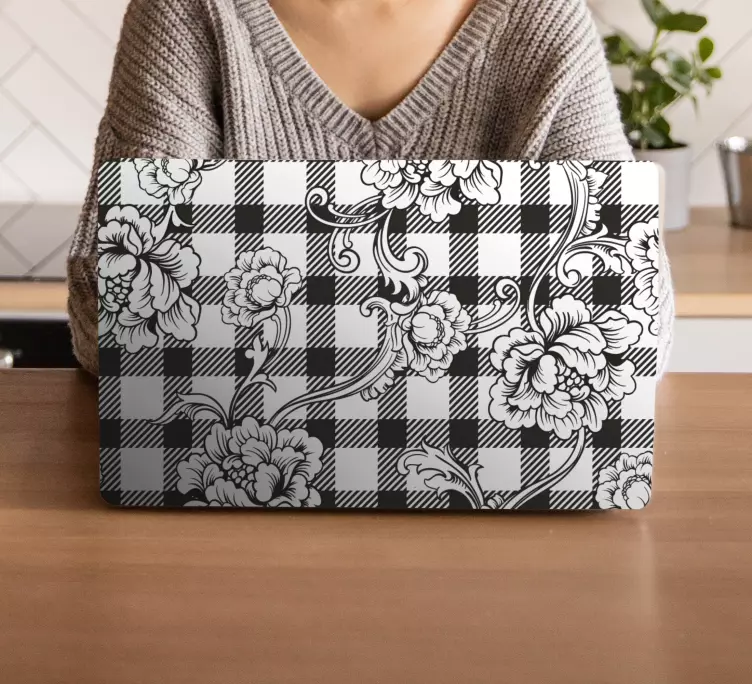Adesivo para laptop com motivo xadrez floral