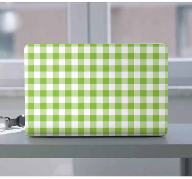 Transforma o teu computador portátil com o Adesivo para laptop estampa xadrez verde, que apresenta um design gráfico cativante! Com uma estampa xadrez em verde que remete a toalhas de mesa feitas de tecido de algodão, este adesivo é perfeito para quem deseja padronizar e dar estilo ao seu equipamento. Ele proporciona um visual único e alegre que certamente destacará o teu laptop em qualquer ambiente!