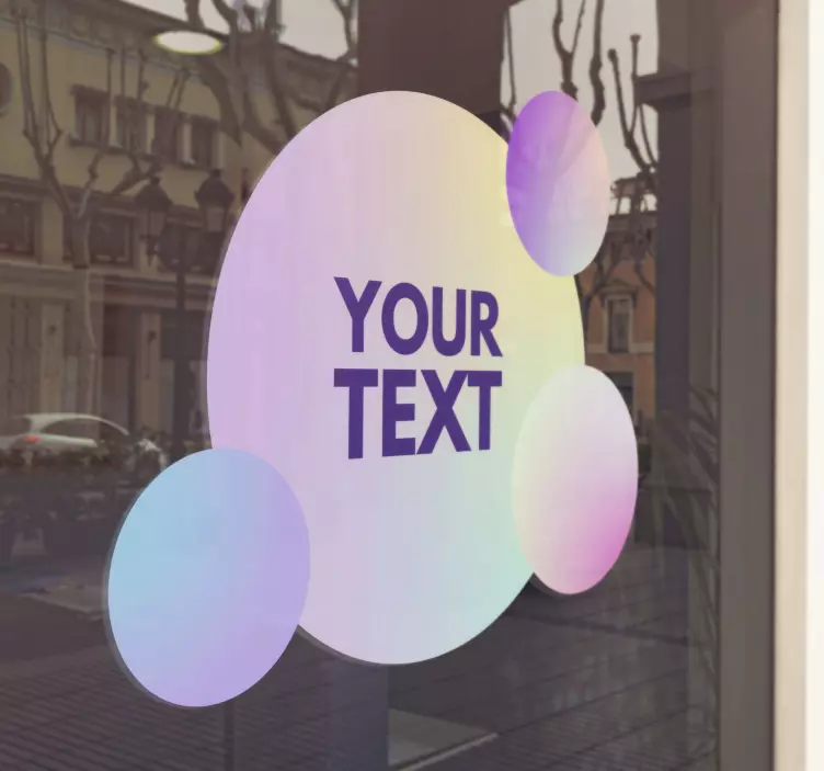 O adesivo para montras círculos de texto personalizáveis é a escolha perfeita para quem deseja adicionar um toque gráfico e moderno às suas vitrines! Com um design que mistura gradientes fluidos e formas geométricas, este produto oferece a possibilidade de personalizar textos de forma colorida e impactante. Transforme a sua vitrine numa obra de arte e atraia olhares com um resumo visual que destaca a singularidade da tua marca!
