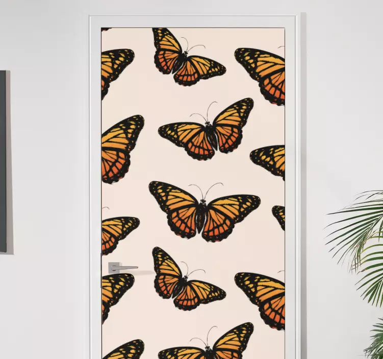 Transforme a sua porta com o adesivo para porta ilustração de borboleta colorida, que traz um design gráfico vibrante e encantador! Com uma linda borboleta monarca em tons de laranja, este adesivo captura a essência da natureza e promete dar vida ao seu ambiente. A arte decorativa de borboletas se destaca, criando um visual harmonioso e alegre que combina perfeitamente com qualquer estilo de decoração!