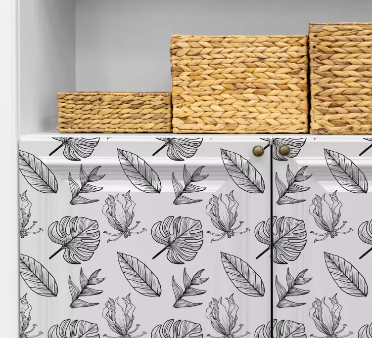 Transforma o teu espaço com o Adesivo plantas com padrões de folhas verdes, um design gráfico que traz a natureza para o interior! Este autocolante apresenta folhas tropicais que padronizam o ambiente, criando uma atmosfera vibrante e fresca. Combinando Preto e branco, ele se destaca em qualquer mobiliário, realçando a beleza floral e natural do teu lar!