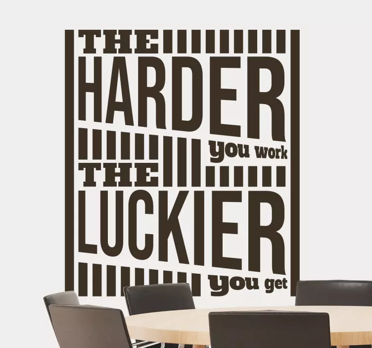 Referência: A48010Uma citação poderosa que enfatiza a relação entre trabalho duro e sorte. Esta frase impactante serve como um lembrete diário para lutar pelo sucesso através da dedicação e esforço. Perfeita para ambientes de escritório ou casa para aumentar a motivação e inspirar ação.