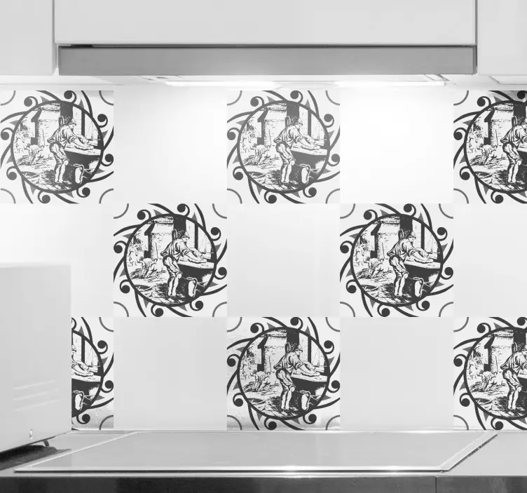 Descobre o nosso Autocolante animal cena de artesanato vintage, um verdadeiro deleite para os olhos! O design gráfico é uma combinação perfeita entre cozimento e arte, onde a figura de uma pessoa interage harmoniosamente com uma telha, resultando numa gravação artística que encanta a todos. No estilo preto e branco, este resumo visual traz um toque vintage que transforma qualquer espaço!