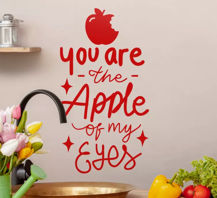 Referência: A49160Uma citação divertida que enfatiza o carinho, apresentando uma ilustração vibrante de maçã. O texto expressa criativamente o afeto, tornando-se uma adição encantadora à decoração da cozinha. Este design é adequado para diversas necessidades personalizáveis, acrescentando um toque pessoal ao seu espaço.
