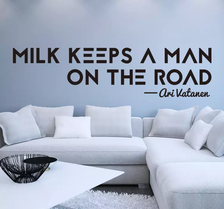 O Autocolante animal o leite faz o homem seguir apresenta um design gráfico cativante que combina texto e elementos visuais como um carro em corrida, trazendo uma inspiração única. Com uma tipografia minimalista em preto e branco, este produto é perfeito para quem busca um toque especial na decoração, destacando a essência da raça e a ideia de continuar. É mais do que um simples autocolante; é uma afirmação de estilo!