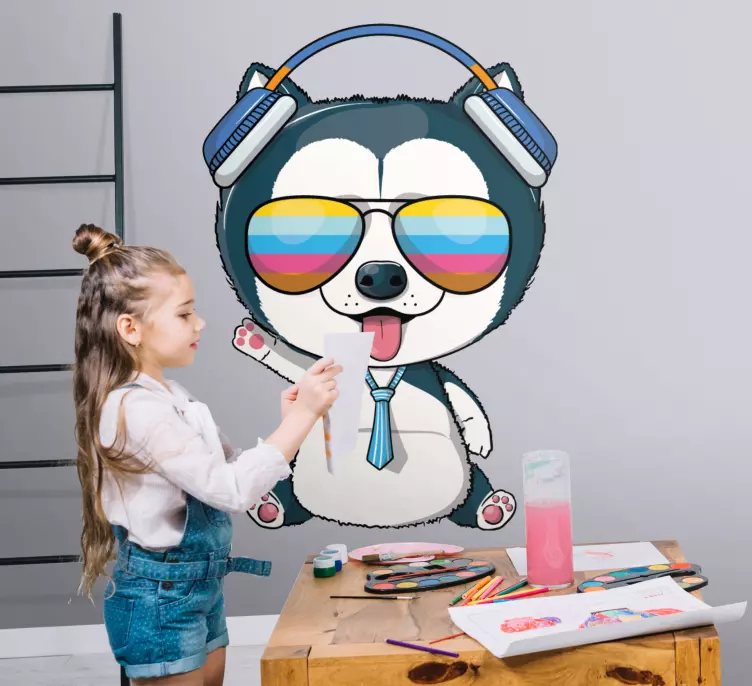 Este autocolante animal personagem de bicho legal é o toque perfeito para quem busca um design gráfico vibrante e divertido! Com um adorável cão usando óculos escuros e fones de ouvido, este desenho animado é não só fofo, mas também traz uma dose de diversão e musicalidade a qualquer ambiente. A sua palete de cores colorida e brincalhona transforma espaços comuns em lugares cheios de alegria!