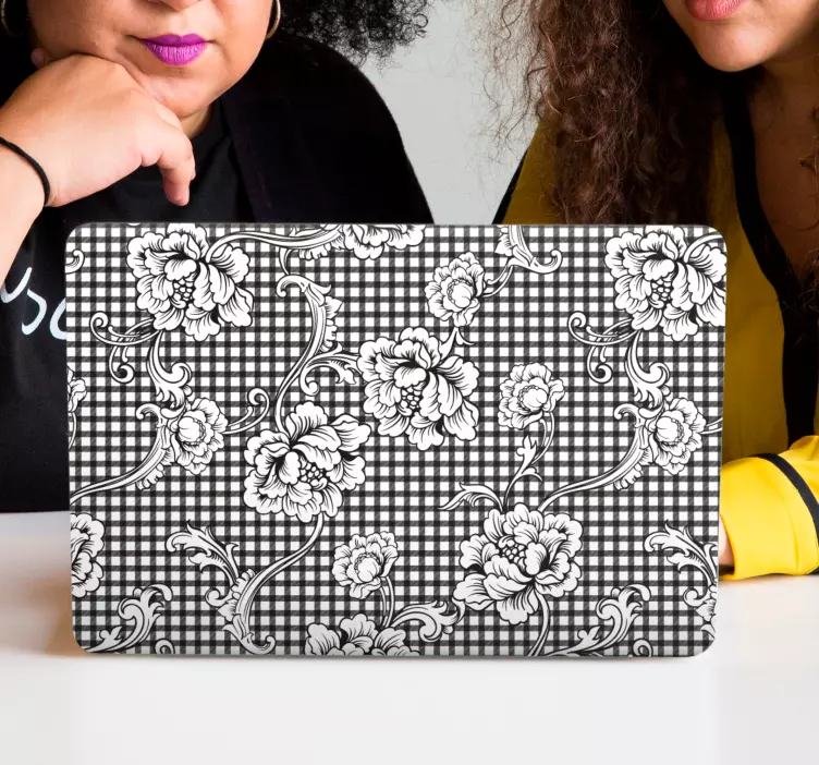 Autocolante decorativo para PC Padrão de guingão vintage preto e