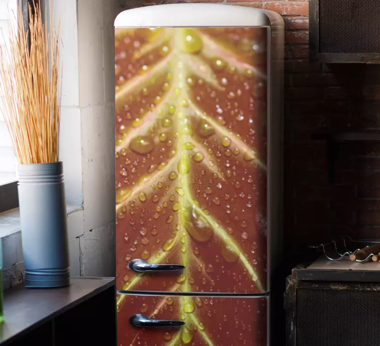 Transforma o teu frigorífico com o Autocolante para frigorífico gotas de Água em folha, um design gráfico que traz a beleza da natureza para o teu espaço. Com elementos inspirados na maranta, folhas e o encanto das gotas de água, este produto floral em tons de verde cria uma textura vibrante que ilumina qualquer ambiente. É a escolha perfeita para quem ama a natureza e deseja levar essa essência para dentro de casa!