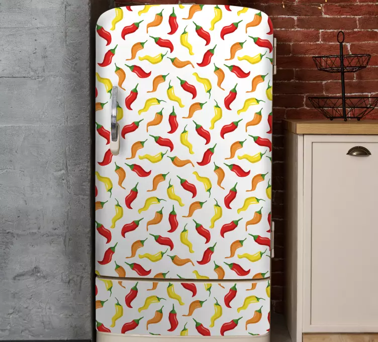 Transforma a tua cozinha com o Autocolante para frigorífico pimentas coloridas, um design gráfico vibrante que traz a energia das pimentas para o coração da tua casa! Com cores intensas, este autocolante é perfeito para padronizar o frigorífico, tornando-o um verdadeiro destaque na decoração da cozinha. As pimentas não só representam a paixão pela comida, mas também adicionam um toque divertido e colorido ao ambiente.