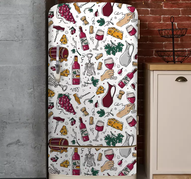 Autocolante para frigorífico tema de comida e vinho