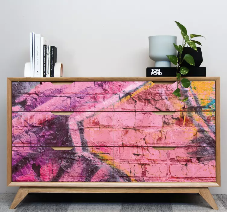 Transforma o teu espaço com o autocolante para móveis com estilo colorido marcante, que traz um design gráfico impressionante! Com uma combinação vibrante de cores e elementos como parede de tijolos, grafite, graffiti, e a essência da arte urbana, este produto é perfeito para quem busca inovação e personalidade. A textura colorida e geométrica proporciona um toque artístico ao teu mobiliário, trazendo vida e estilo a qualquer ambiente.