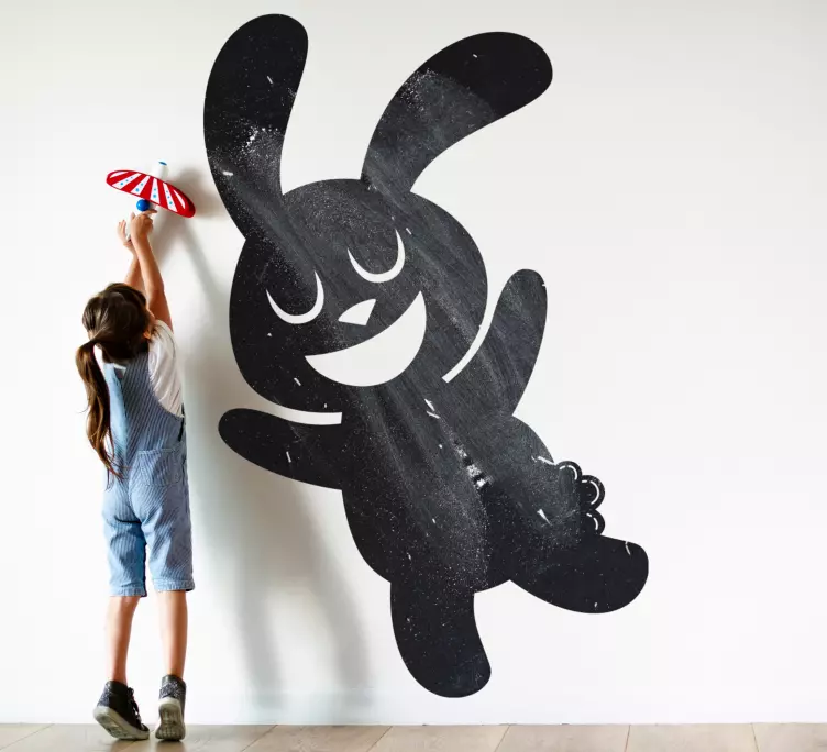 Transforme o ambiente das crianças com o nosso Autocolante quadro preto coelho alegre! Este adesivo traz um design gráfico encantador, apresentando a silhueta de um coelho feliz e brincalhão. Com traços caprichosos e um sorriso contagiante, ele se destaca como uma peça lúdica perfeita para quartos infantis. A estética de desenho animado vai encantar os pequenos e estimular a criatividade!