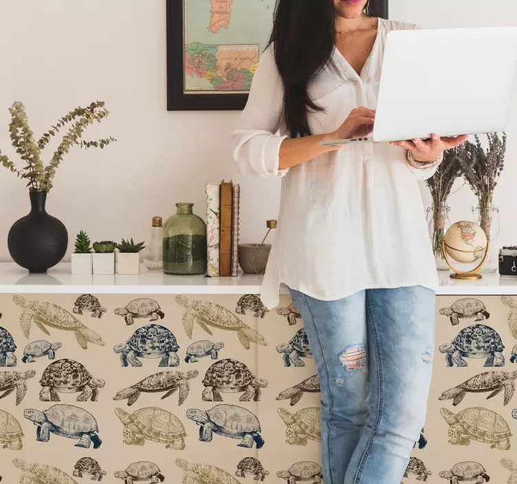 de móveis de fundo bege tartaruga para o seu espaço. Pode ser usado na cozinha, casa de banho e até em móveis da sala e do quarto. Este autocolante é original e possui uma aparência realista. Não se desgasta nem desbota com o tempo, mantendo sempre a aparência original. Além disso, esteautocolante para móveis