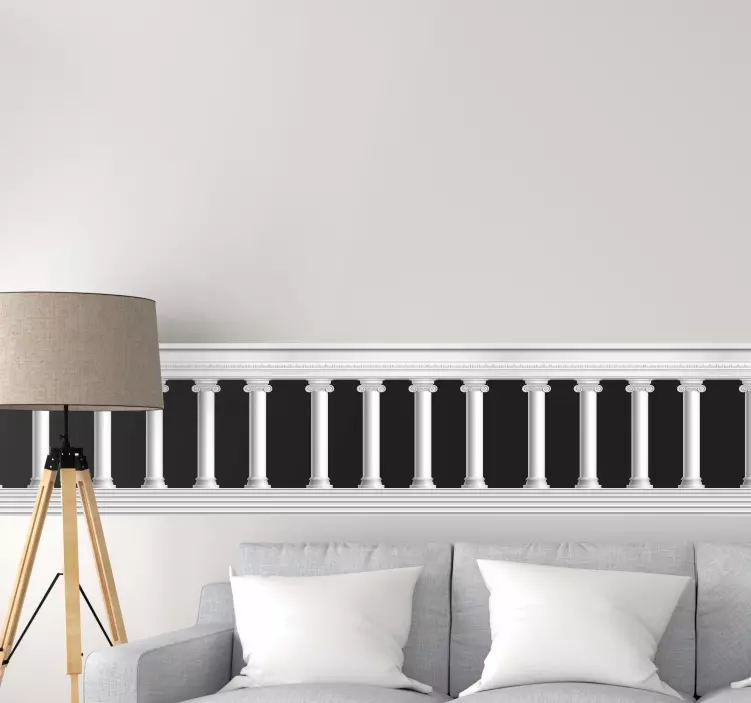 Transforma o teu espaço com o Friso autocolante padrão de colunas elegante, um produto que traz um toque de sofisticação ao teu interior! Com um design gráfico que evoca a grandiosidade da arquitetura romana, este friso é ideal para quem aprecia a beleza das colunas. Disponível em Preto e Branco, ele cria uma fronteira visual que destaca a elegância de qualquer ambiente, tornando-o mais acolhedor e estiloso.