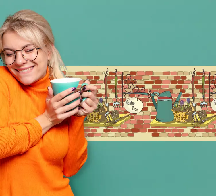 Transforma o teu espaço com o Friso autocolante para exibição de ferramentas de jardim! Com um design gráfico encantador que incorpora elementos como tijolo, parede de tijolos e desenho animado, este produto é perfeito para dar um toque decorativo à tua cozinha ou ao jardim. Os utensílios de cozinha e as ferramentas ganham vida numa apresentação colorida que traz alegria e personalidade ao ambiente!