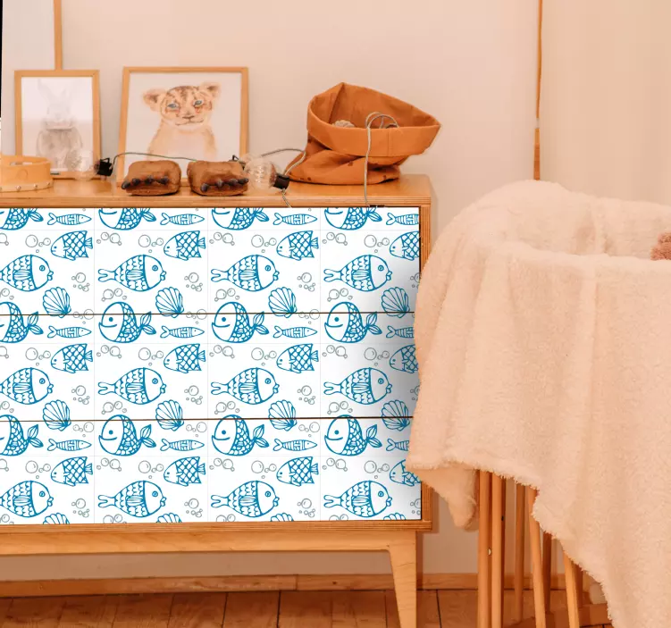 Vinil para móveis Desenhados peixes azuis no fundo branco