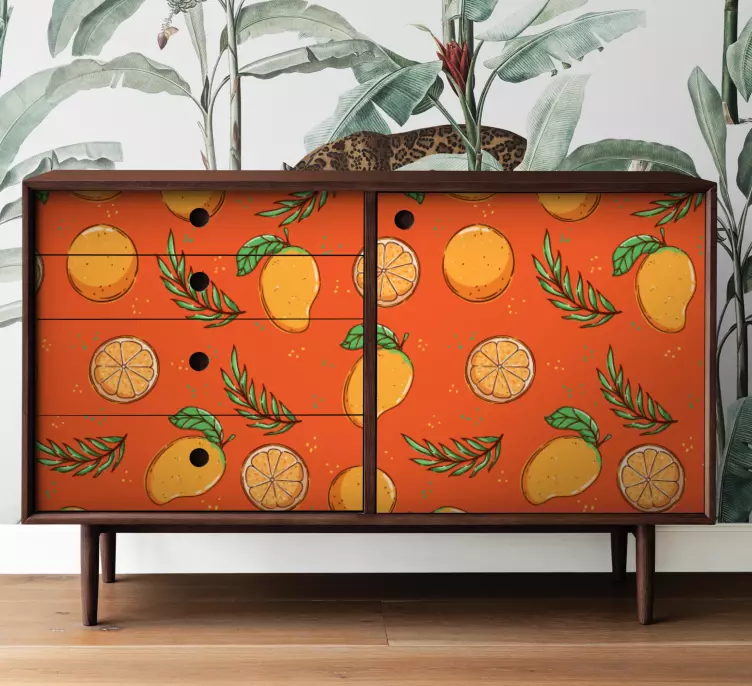 Referência: A30696Autocolante de mobília de folhas com frutas laranja