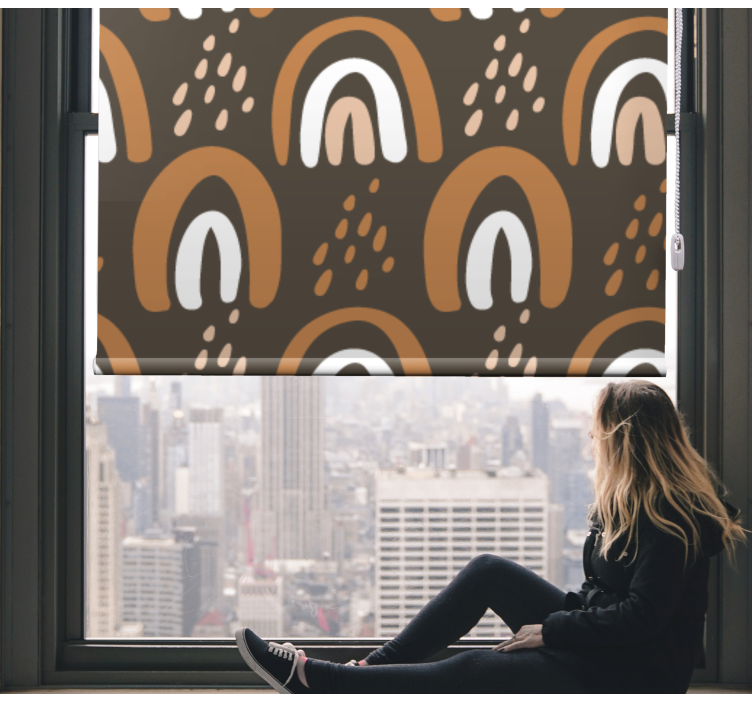Transforma o ambiente dos mais pequenos com o estore de rolo infantil arco-íris terrosos pintados, que traz um design gráfico encantador! Com rabiscos divertidos, pontos vibrantes e um arco-íris harmonioso, este estore combina padrões brincalhões e tons terrosos, criando um ambiente decorativo e acolhedor. É a escolha perfeita para dar vida ao quarto das crianças!