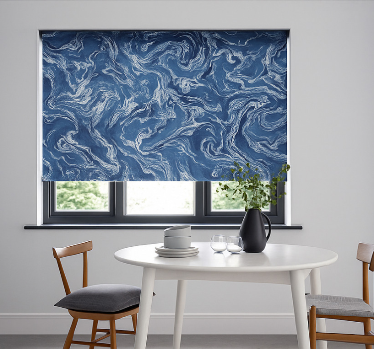 Referência: E5867O estore de rolo juvenil mármore índigo abstrato é uma peça única que combina arte e funcionalidade, trazendo um toque gráfico e contemporâneo para qualquer ambiente. Com um design que apresenta um padrão de mármore em tons de índigo, este estore transforma a decoração do teu quarto, oferecendo estilo e charme em cada detalhe.
