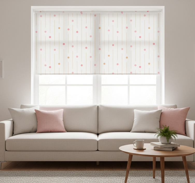O estore de rolo modernos com pontos coloridos e linhas é a escolha perfeita para quem deseja adicionar um toque especial à sua casa! Ele não apenas valoriza a decoração do quarto, mas também permite regular a temperatura ambiente, tornando o espaço mais acolhedor. Com seu design único, este estore inspira criatividade e transforma qualquer sala em um lugar mais personalizado e vibrante!