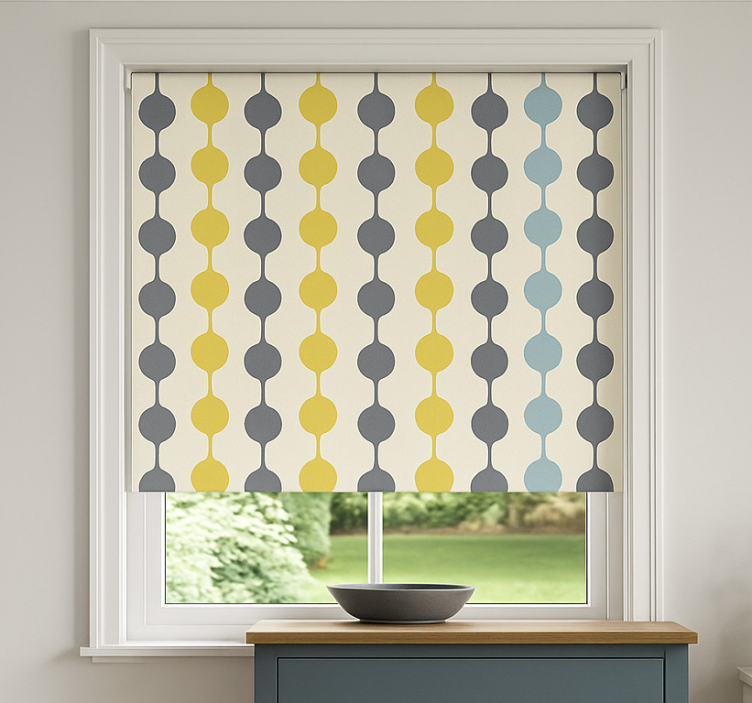 Referência: E6089O estore de rolo nórdico com círculos coloridos pendurados traz um design gráfico vibrante que transforma qualquer ambiente. Com uma combinação de cores alegres e formas geométricas, este estore é a escolha perfeita para quem busca adicionar um toque de modernidade e estilo ao espaço. A sua fácil montagem em 2 cliques e a possibilidade de ser facilmente limpo tornam este produto não apenas bonito, mas também prático e funcional!