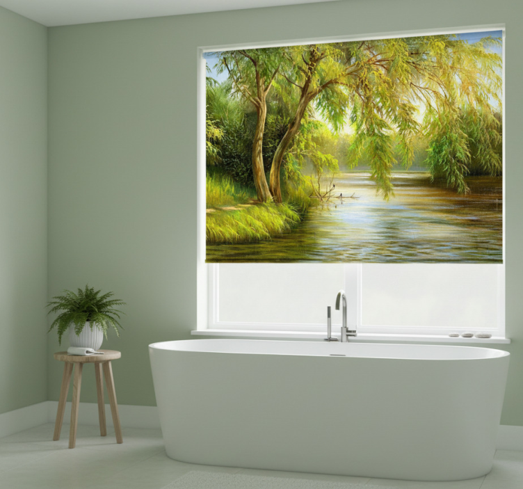 Estores de rolo de árvores salgueiro do rio sereno