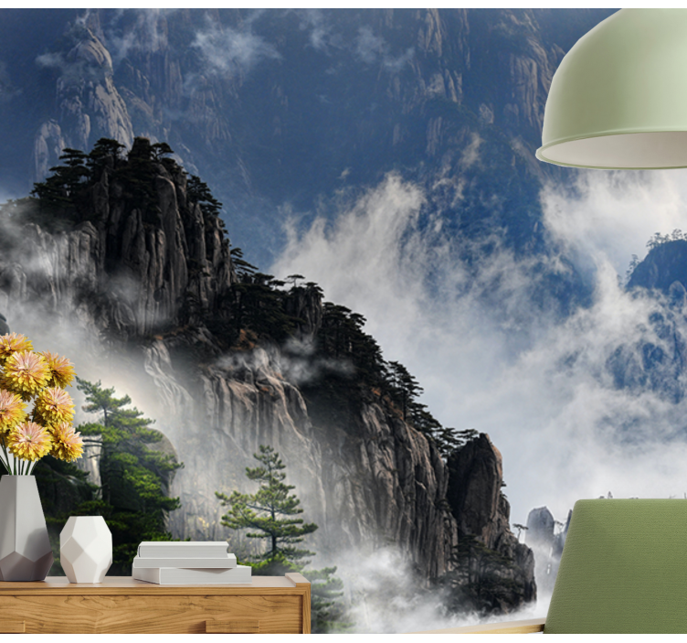da natureza de montanhas escuras. Adicione uma bela imagem às suas paredes lisas e deixe-as lindas! Este produto é extremamente fácil de instalar, e ainda vem com o seu próprio manual de instruções. Oproduto apresenta a imagem de algumas montanhas com árvores em uma noite de nevoeiro