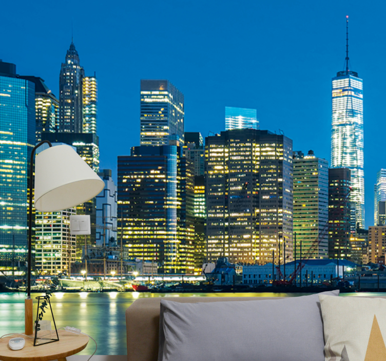Com facilidade, você pode colocá-lo no tamanho ideal para suas paredes, garantindo um resultado impecável. A paisagem de Nova York à noite com uma estética moderna é o tema deste fotomural, trazendo um toque de sofisticação ao ambiente.