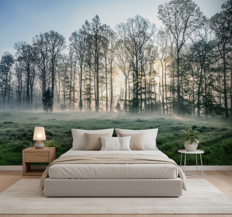 Mural de parede bosques campo da manhã nebulosa