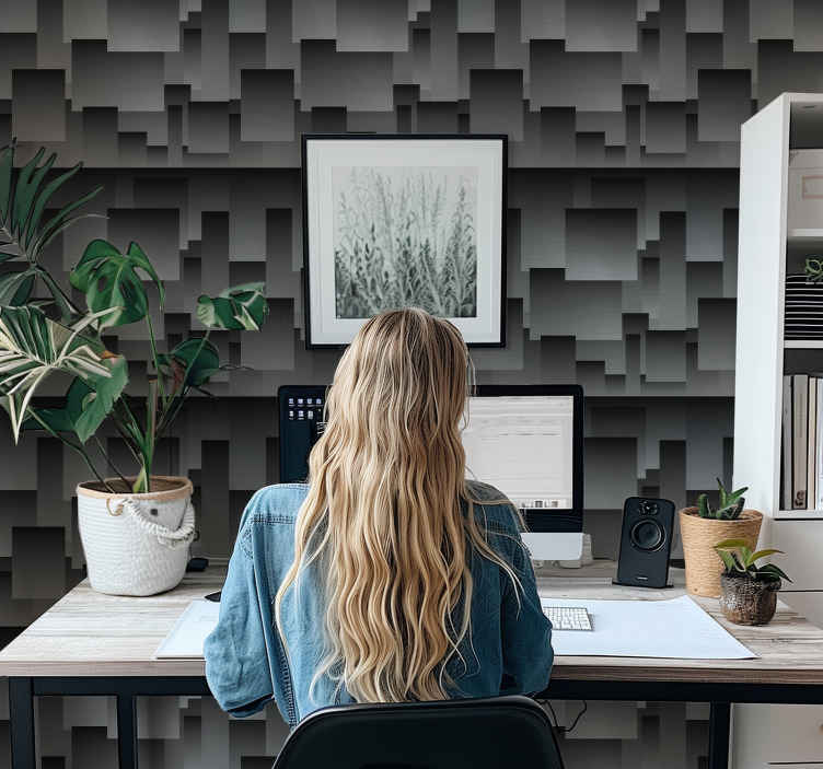 Referência: P6191O papel de parede preto desenho de quadrados possui um design gráfico moderno, com destaque para os quadrados em tons de preto e cinzento, transmitindo elegância e sofisticação para o ambiente. Ideal para quem busca uma decoração diferenciada e contemporânea!