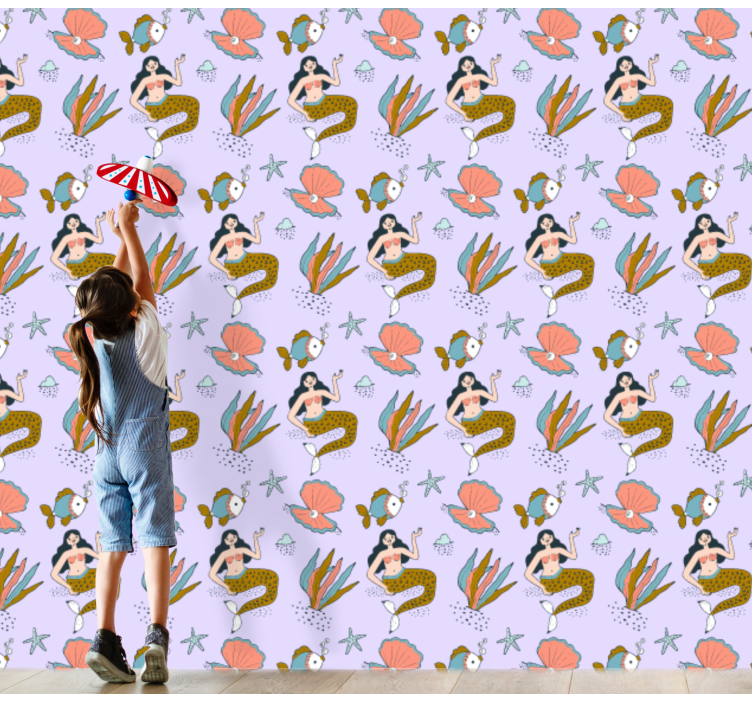 papel de parede criança Sereias e conchas