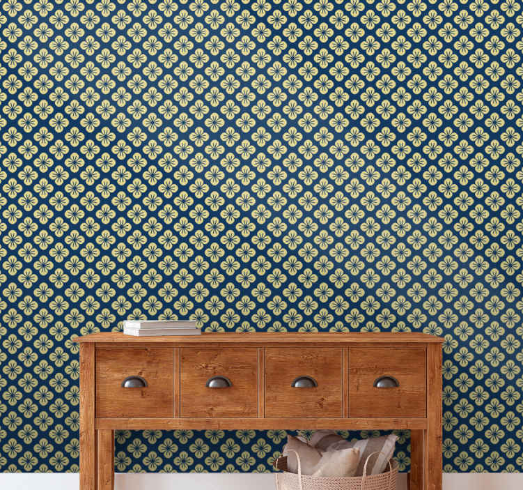 Se você está à procura de uma decoração moderna e elegante para seu quarto ou qualquer outro espaço, experimente nosso papel de parede com padrão étnico de flores geométricas em azul e amarelo, que ficará perfeito em qualquer espaço da sua casa! Este lindo padrão é obrigatório na decoração moderna.