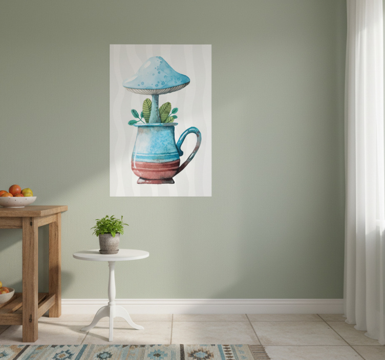 Para aplicar o Poster cozinha com design fofo de cogumelo na xícara, basta escolher o espaço ideal na tua cozinha e fixá-lo com facilidade. A montagem é simples e rápida, permitindo que desfrutes da nova decoração sem complicações!