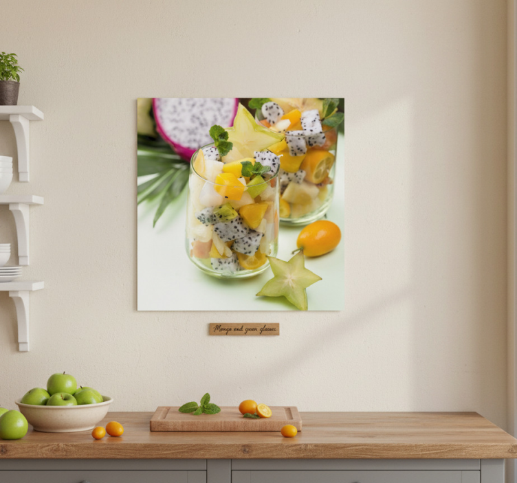 Para aplicar o Poster para cozinha poster cozinha manga e copos verdes, basta escolher um local visível e usar fita adesiva ou moldura. É uma forma simples de adicionar estilo e personalidade ao teu espaço!
