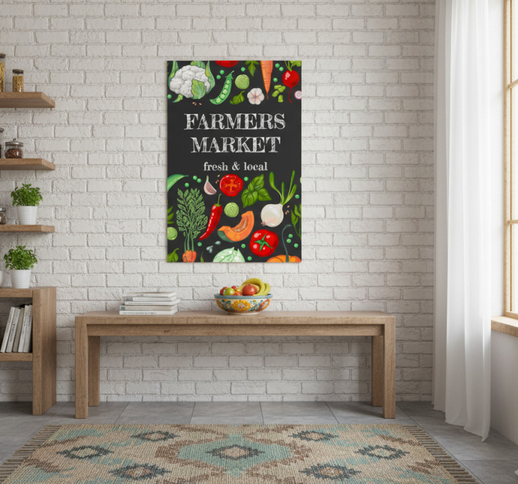 Para adicionar o Poster para cozinha mercado de agricultores à tua decoração, basta escolher um local de destaque onde a luz natural possa realçar as suas cores vibrantes. Uma parede acima da bancada ou perto da mesa de jantar são opções perfeitas! Com uma fácil montagem, o poster pode ser fixado rapidamente, permitindo que desfrutes da sua beleza em poucos instantes.