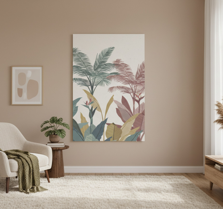 Para aplicar o Poster flores e plantas com motivo de folhagem tropical, basta escolher a parede que deseja transformar e usar fita adesiva ou moldura para pendurá-lo. É uma tarefa simples que resulta em um impacto visual incrível, trazendo um novo ar ao teu espaço!