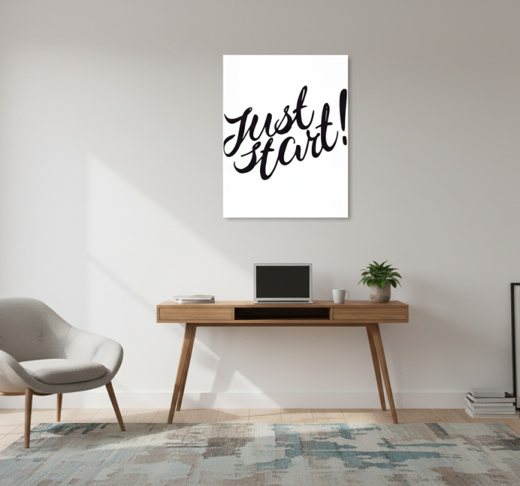 Aplicar o Poster para escritório comece agora é muito simples! Basta escolher o local desejado na parede, garantir que está limpo e seco, e fixá-lo com os suportes inclusos. Em poucos minutos, já poderás desfrutar de um ambiente revitalizado e inspirador!