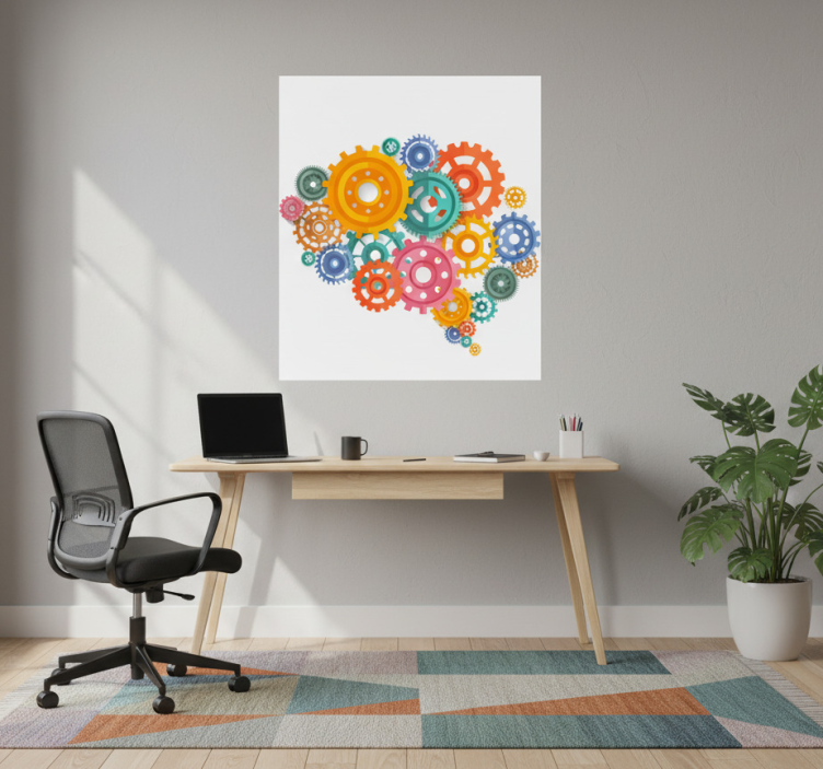 Referência: G683Transforma o teu espaço de trabalho com o Poster escritório engrenagens coloridas de cérebro, uma peça de arte gráfica que combina criatividade e inspiração. Com um design vibrante e único, este poster apresenta engrenagens coloridas em um padrão que estimula a mente e a imaginação, tornando-se um elemento decorativo perfeito para qualquer ambiente profissional. A sua estética moderna e cativante é ideal para dar um toque de vida e dinamismo ao teu escritório!