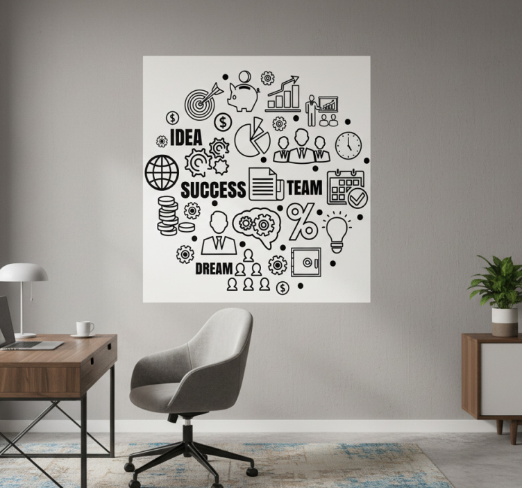Para utilizar o Poster para escritório poster escritório ideograma empresarial, basta escolher a parede que mais necessita de um toque especial e fixá-lo com facilidade! A aplicação é simples e rápida, permitindo que transformes o ambiente em poucos minutos. Aproveita a versatilidade deste poster e dá vida ao teu espaço de trabalho!