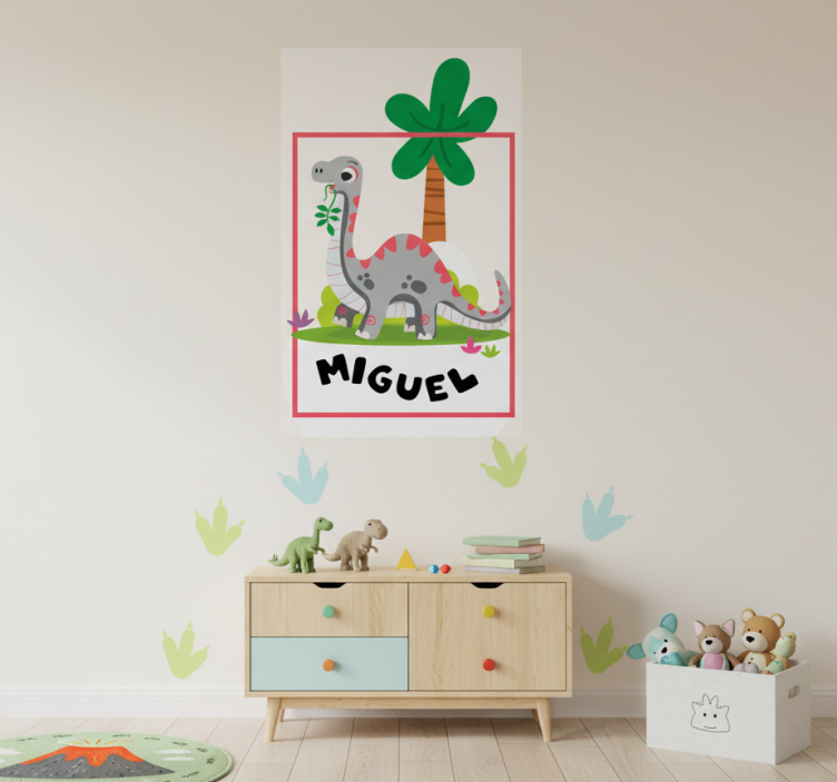 Para utilizar o Poster para crianças poster infantil dinossauro cinza de pescoço longo, basta escolher uma parede livre e usar um suporte adequado para fixá-lo. A aplicação é simples e rápida, permitindo que o poster se destaque na decoração do quarto!