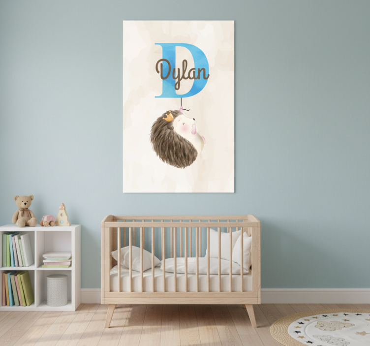 Poster infantil ouriço com inicial e nome