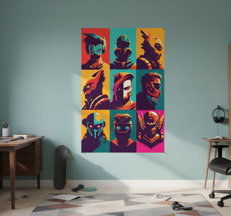Aplicar o Poster para jovens poster juvenil personagens épicos em pop art é muito fácil e divertido! Basta escolher a parede que mais gostas e usar fita adesiva ou moldura para fixá-lo, criando uma exibição impressionante. A sua instalação é tão simples que podes mudar de lugar sempre que quiseres!